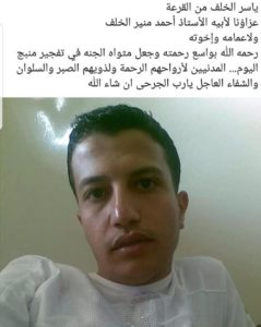 ولم تعلن وزارة الدفاع اسم القتيل الرابع وهو متعاقد يعمل في شركة خاصة والتي اعلنت اسمه وهي الموظفة في شركة «فاليانت»، غدير طاهر.