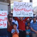 تظاهر العشرات من مهجري الغوطة الشرقية والذين جرى توطينهم في مدينة عفرين واريافها رافضين قرارا اتخذه المجلس المحلي يطالبهم باخلاء منازل لاكراد بعد عودة اصحابها.