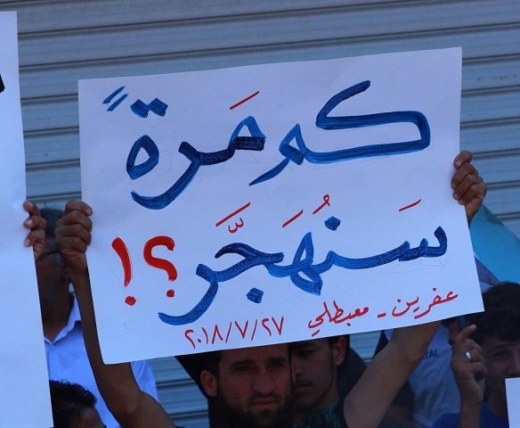 احتجاج في مدن وبلدات واقعة تحت سيطرة القوات التركية ضد الحملة التي ينفذها ذراعها في “الجيش الوطني”