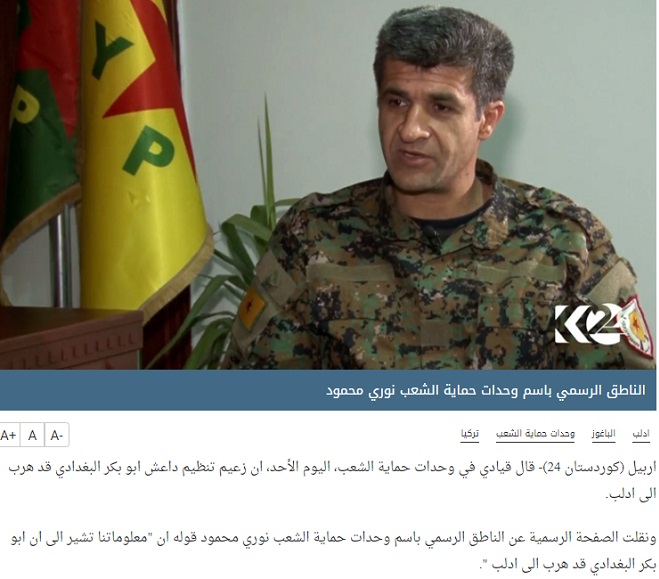 بولات جان كشف إنهم حصلوا على معلومات مؤكدة تفيد بانتقال البغدادي في شهر نيسان من منطقة الدشيشة في ديرالزور إلى منطقة إدلب وهي المعلومة التي اكدها كذلك الناطق باسم وحدات حماية الشعب نوري محمود.