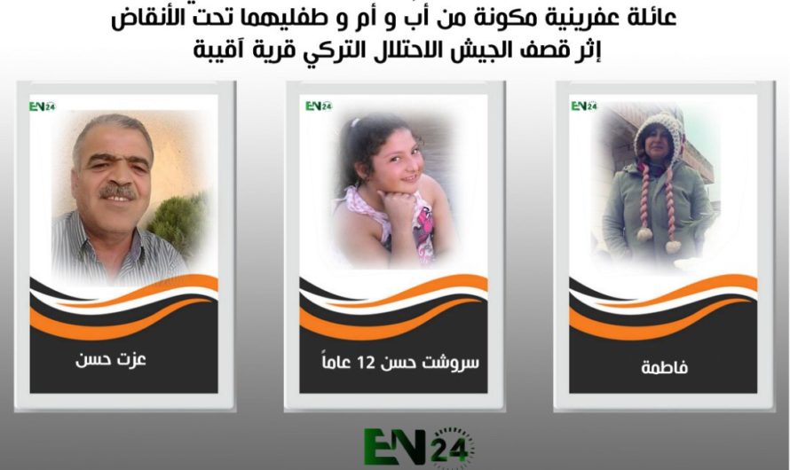 استشهاد عائلة مؤلفة من 3 أشخاص في قصف تركي استهدف قرى في ريف عفرين