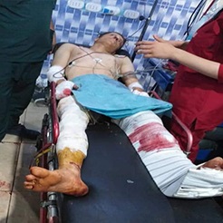وممن أصيبوا أيضاً جراء انفجار الألغام في مناطق الشهباء الطفل محمد مصطفى عندما كان يلعب بجوار منزله في ناحية تل رفعت.