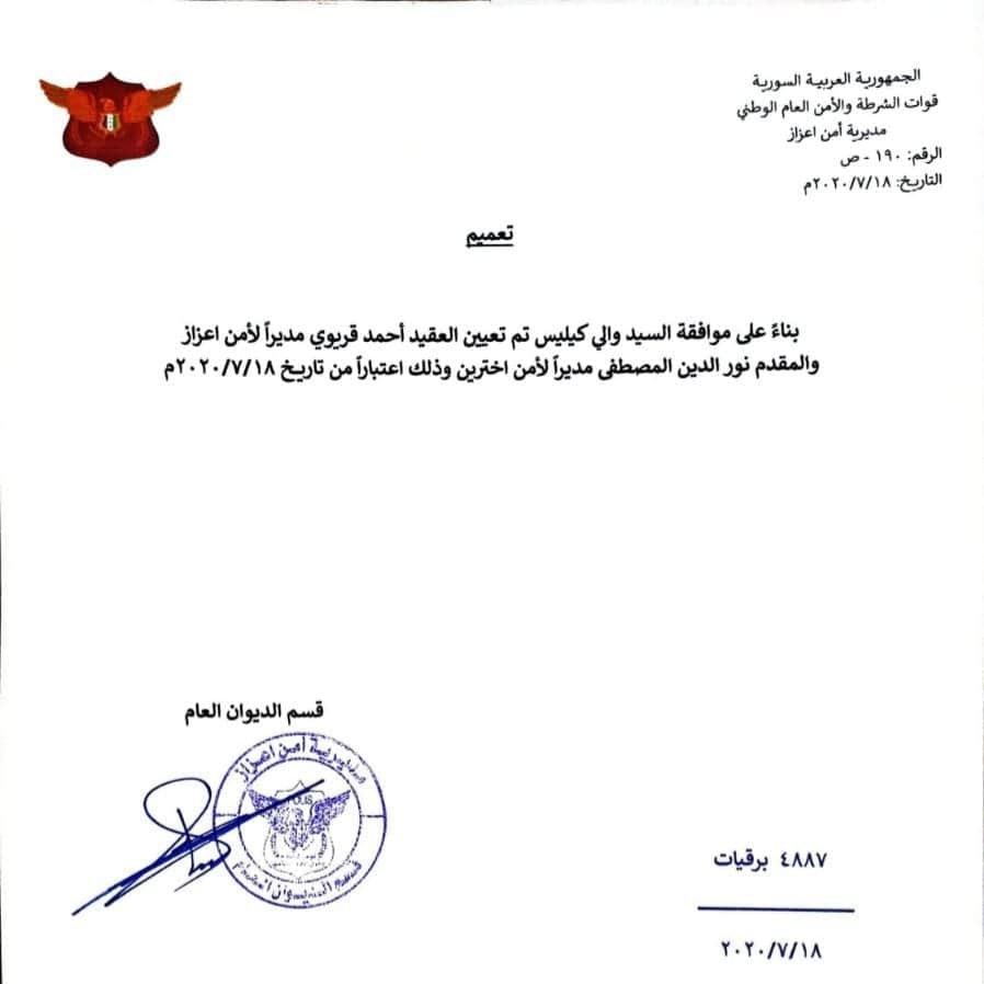 بناء على موافقة والي كيليس..