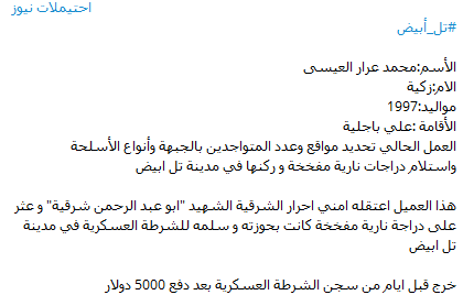 وختمت تلك “الرسالة” بالقول: “هذا الإرهابي قام بعدة عمليات إرهابية وتفجيرات بالمناطق المحررة..” وجرى توقعيها باسم “سرايا المجد”، وهي أحدى فصائل ما بات يعرف بـ”الجيش الوطني الحر” الموالي لأنقرة.