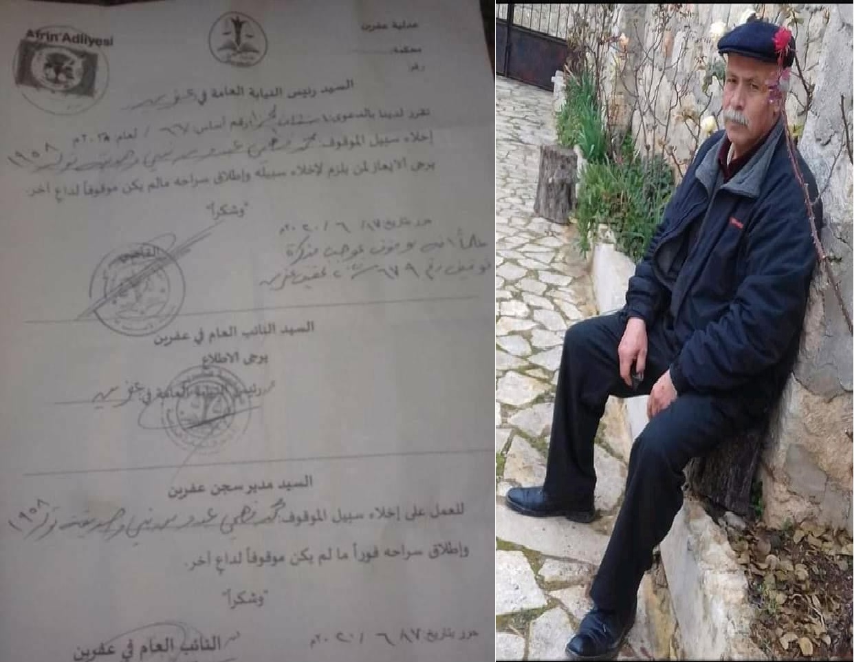 يواصل المسلحون الموالون لتركيا في مدينة عفرين اعتقال المهندس محمد فهمي عبدو ، منذ تاريخ 7 نيسان 2020 ، رغم كبر سنه ، ومعناته من المرض .