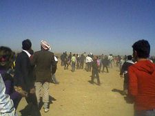 وأضاف: “في البداية جاء أعضاء من حزب البعث فقمنا بتحيتهم واستقبالهم كوننا شعب سوري واحد, ولكنهم قاموا بشتمنا بعبارات بذيئة, ومن ثم أطلقوا قنابل دخانية فيما أطلقت الأجهزة الأمنية الرصاص في الهواء, وبعد احتدام المواجهة بيننا وبينهم أطلقوا علينا الرصاص الحي ما أسفر عن استشهاد المواطن محمد عمر من عشيرة الحيدرات وأصيب عشرات المشاركين في الاحتفال”.