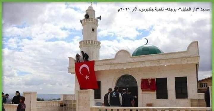 تغيير ديمغرافي …مساجد عفرين مزينة بالأعلام التركية …