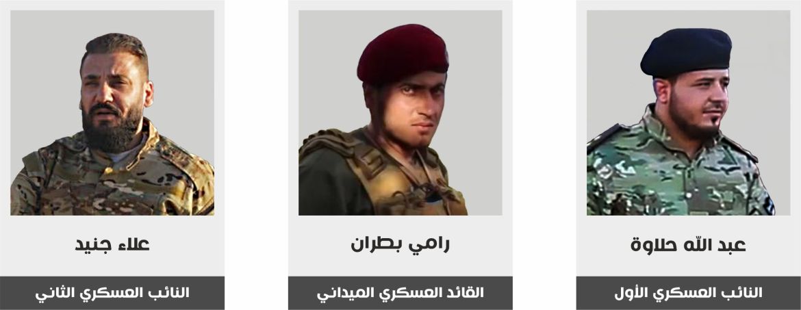 رامي بطران: الملقب “أبو جابر”؛ ملازم منشق عن الجيش السوري، وهو القائد العسكري لفرقة الحمزة أثناء العمليات القتالية، وقائد لواء عمر الفاروق، وهو الأكثر ضلوعاً في الانتهاكات أثناء اقتحام المدن، وقد ذكر اسمه في ملف سجن المحمودية في مدينة عفرين، كما يتهم بالتسبب بهجرة نحو 100 عائلة مسيحية من مدينة رأس العين بسبب انتهاكات وعمليات سطو ارتكبها عناصره تجاه العائلات المسيحية في المدينة وبأمر مباشرٍ منه.
