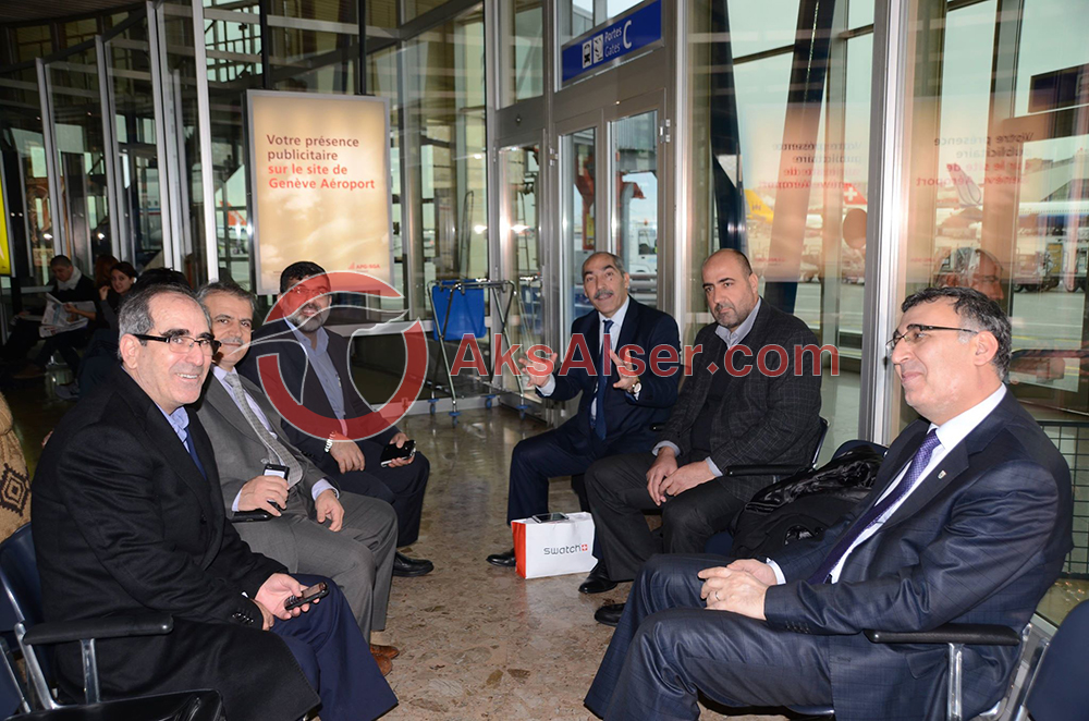 انور رسلان وهو يترأس وفدا أمنيا ضمن الائتلاف في جنيف 2014 ، في الصور يظهر هو مع العميد أسعد الزعبي وأعضاء آخرين في وفد الائتلاف.