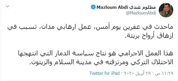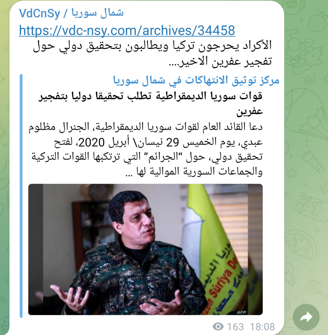 قوات سوريا الديمقراطية تطلب تحقيقا دوليا بتفجير عفرين