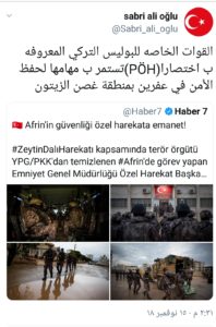 نشرت وكالة الأناضول الرسمية التركية وصفحة “‏القوات الخاصه للبوليس التركي”المعروفه ب اختصارا(PÖH) صورا تكشف عن قيامهم بتحويل مدرسة إلى مقر عسكري. الصور أعادت للواجهة الاتهامات الموجهة للدولة التركية بالقيام بتحول المدارس والمقرات الخدمية لمقرات عسكرية لقواتها أو للمجموعات السورية المسلحة التي تدعمها.