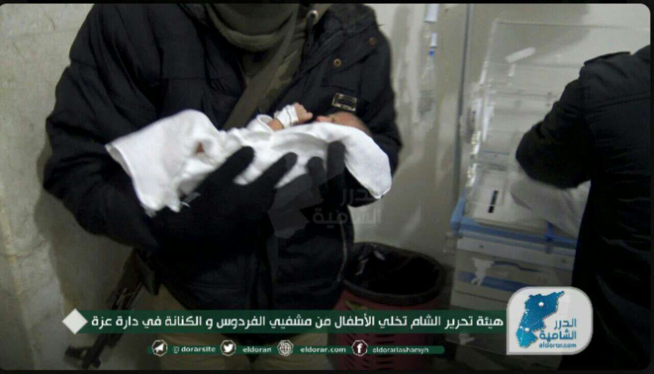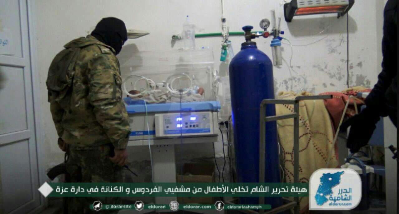 بينما قالت “تحرير الشام” عبر وسائل إعلامها إنه تم إخلاء المرضى من المشفى في حين حال القصف دون القدرة على إخراج الأطفال منه.