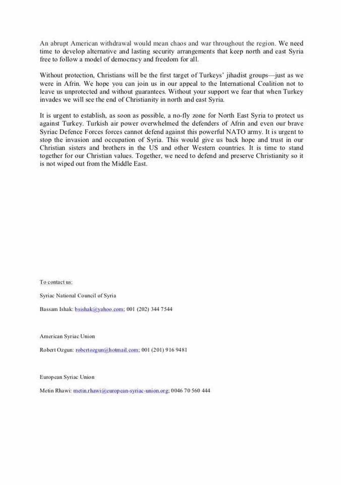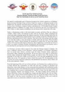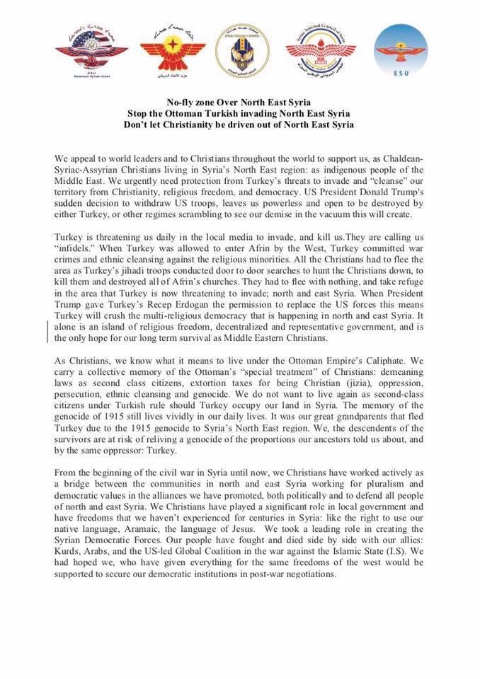 منظمات مسيحية سريانية تطالب أوربا وأمريكا بفرض منطقة حظر جوي شمال سوريا